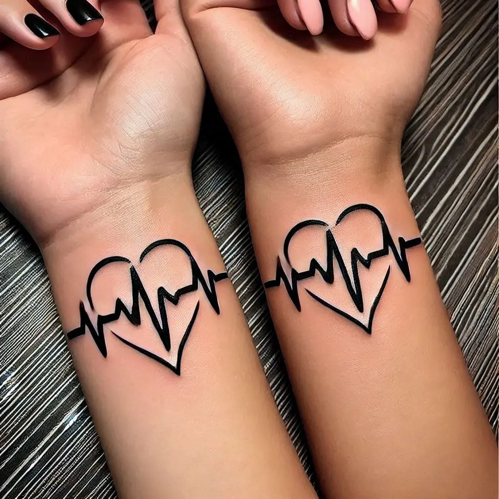 The Heartbeat Line Tattoo is a truly unique and meaningful design for best friends. This tattoo features a continuous line that mimics a heartbeat, often going in different directions or forming a pattern that’s special to the wearers.