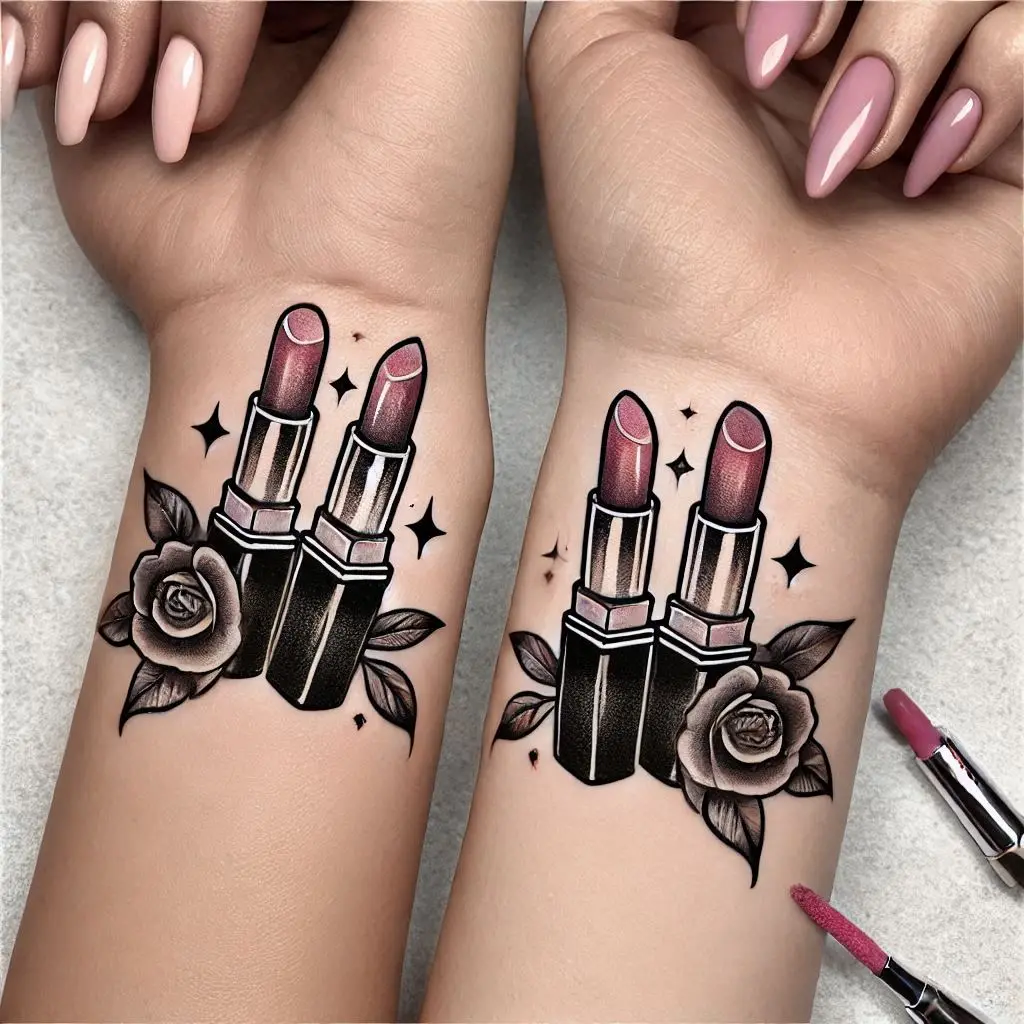 A matching lipstick print tattoo is both stylish and playful. It’s a bold, colorful way to symbolize the femininity and fun side of your friendship.
