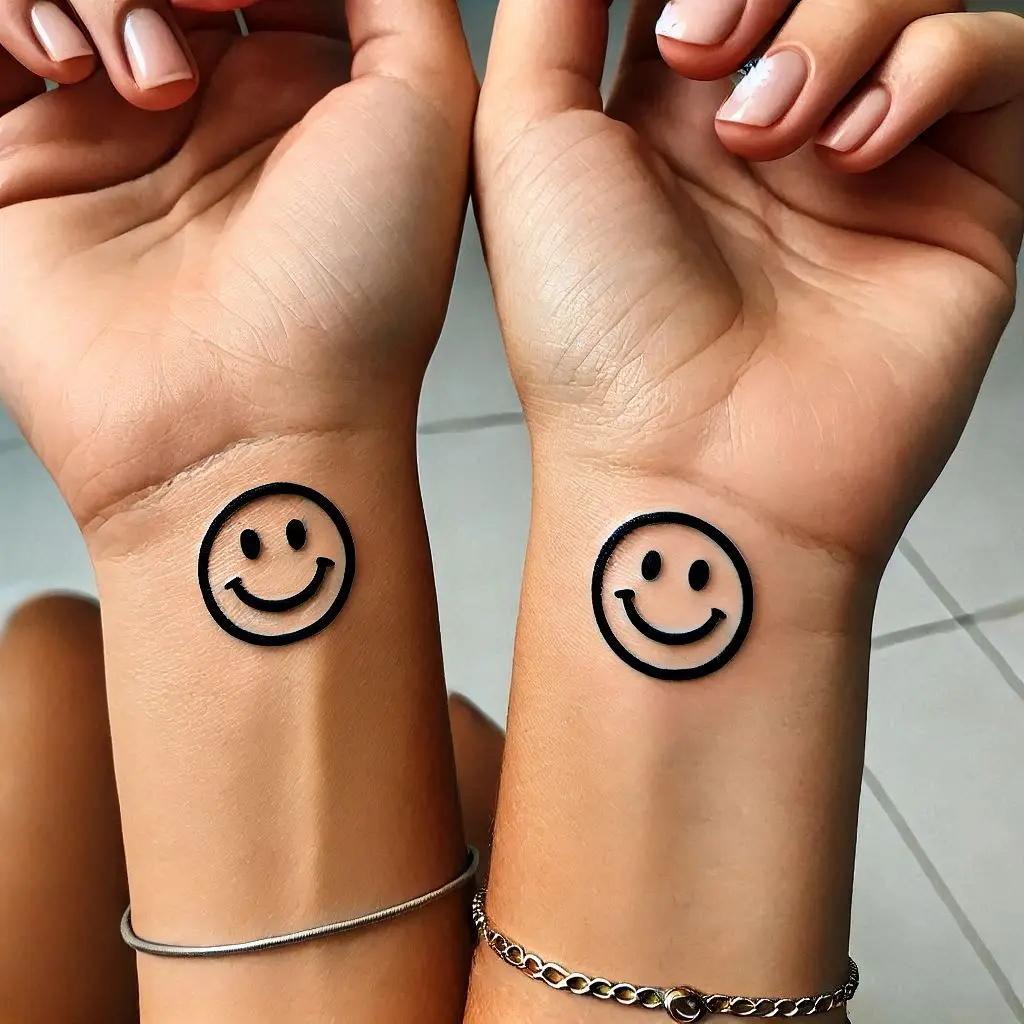 Tattoo Meaning: The smiley face represents happiness, positivity, and the light you bring into each other’s lives.