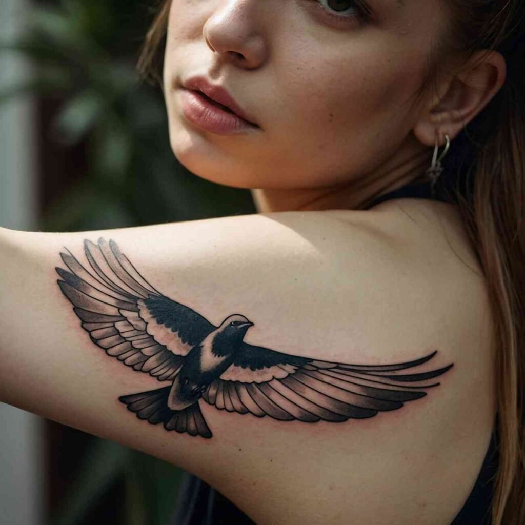 Birds are often associated with freedom, spirituality, and the desire to break free from constraints. Whether it’s a swallow, dove, or eagle, bird tattoos can be symbolic of journeys, both physical and emotional. For women, birds can also represent independence or the aspiration to reach new heights in life.