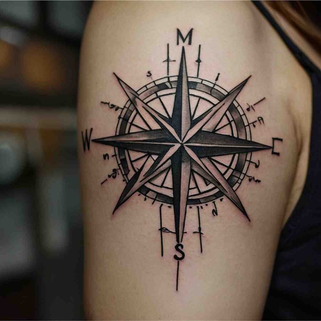 A compass tattoo symbolizes direction and guidance. For women who love adventure or are searching for their true path in life, this tattoo represents the ability to navigate through challenges and find one’s way. It’s a powerful symbol of staying true to yourself, no matter where life leads.