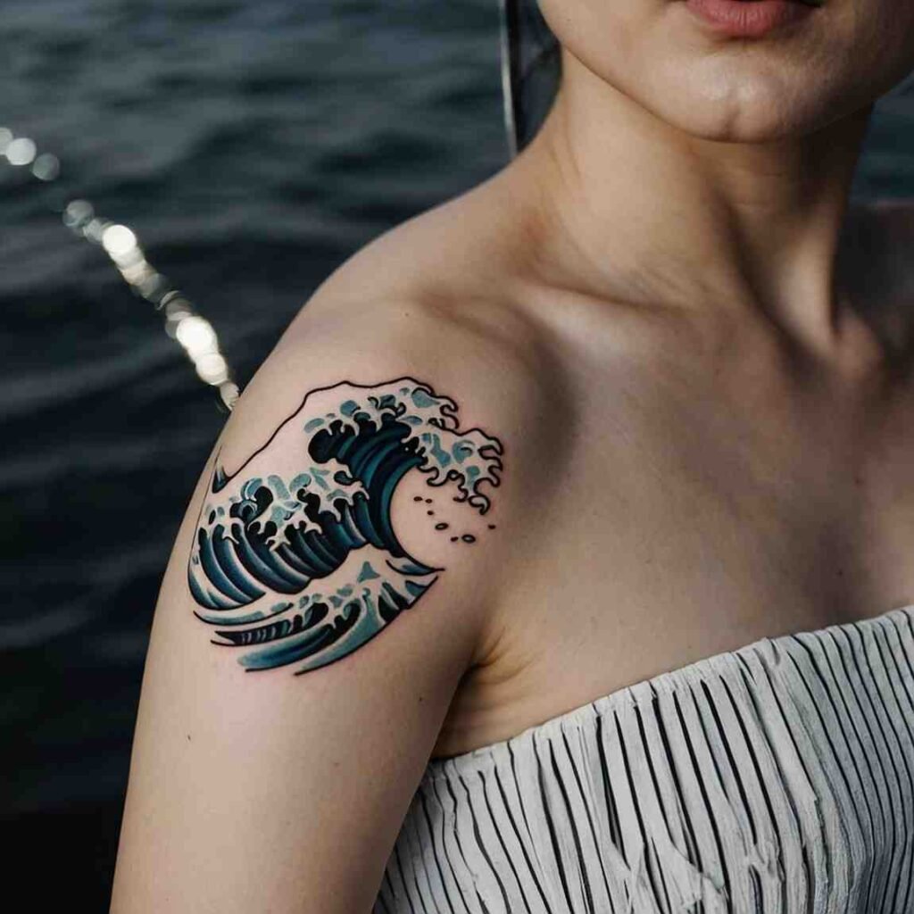 Waves symbolize movement, energy, and the ocean. For women who feel a connection to water or love the sea, this tattoo can reflect your love for nature and life’s ever-changing tides. Waves also represent emotional resilience, as they can crash fiercely yet recede gently, much like the ups and downs of life.