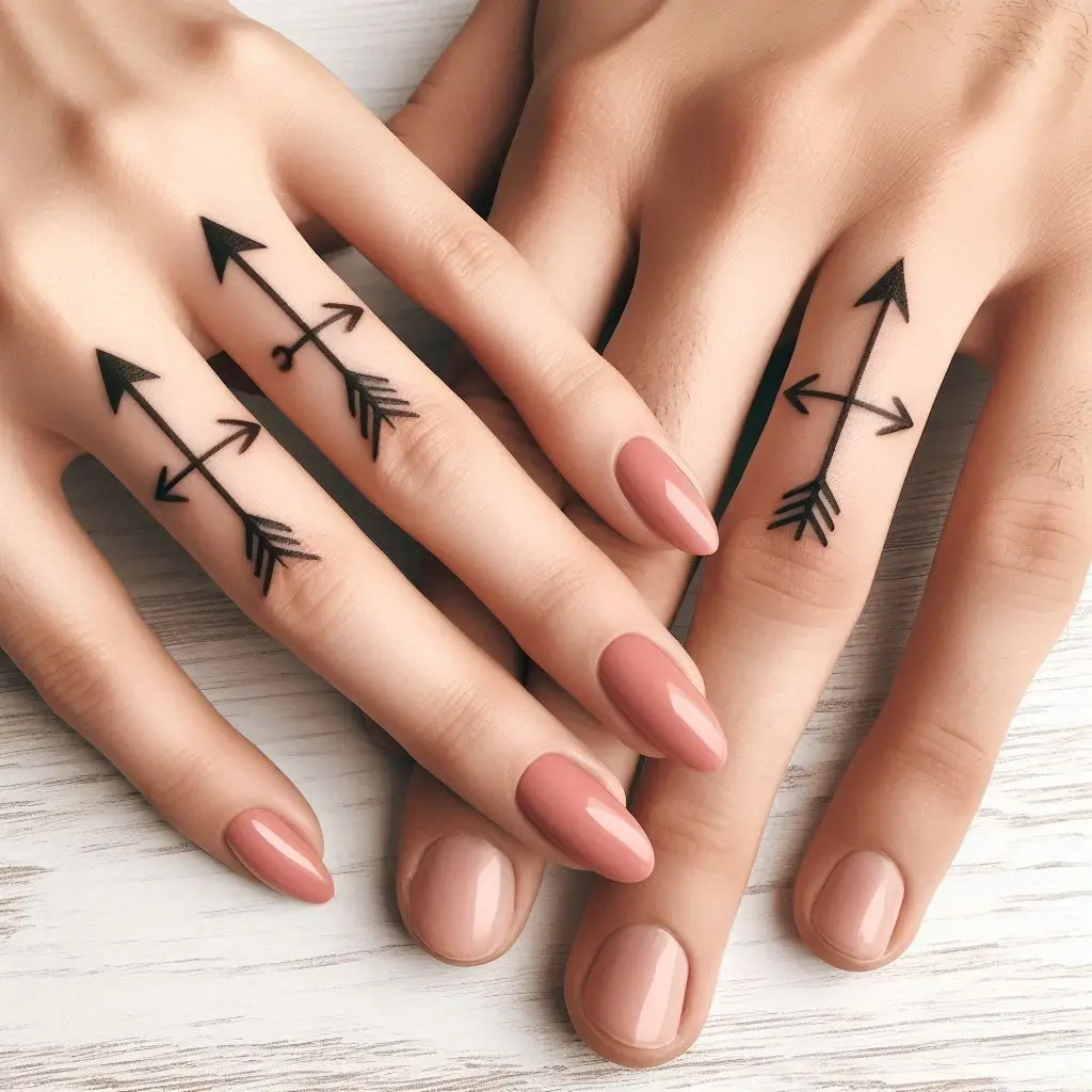 For couples who want a symbolic design representing the direction of their lives together, matching arrow tattoos are a great choice. These arrows can be inked in a variety of ways—whether they’re pointing toward each other or intertwined to signify unity.