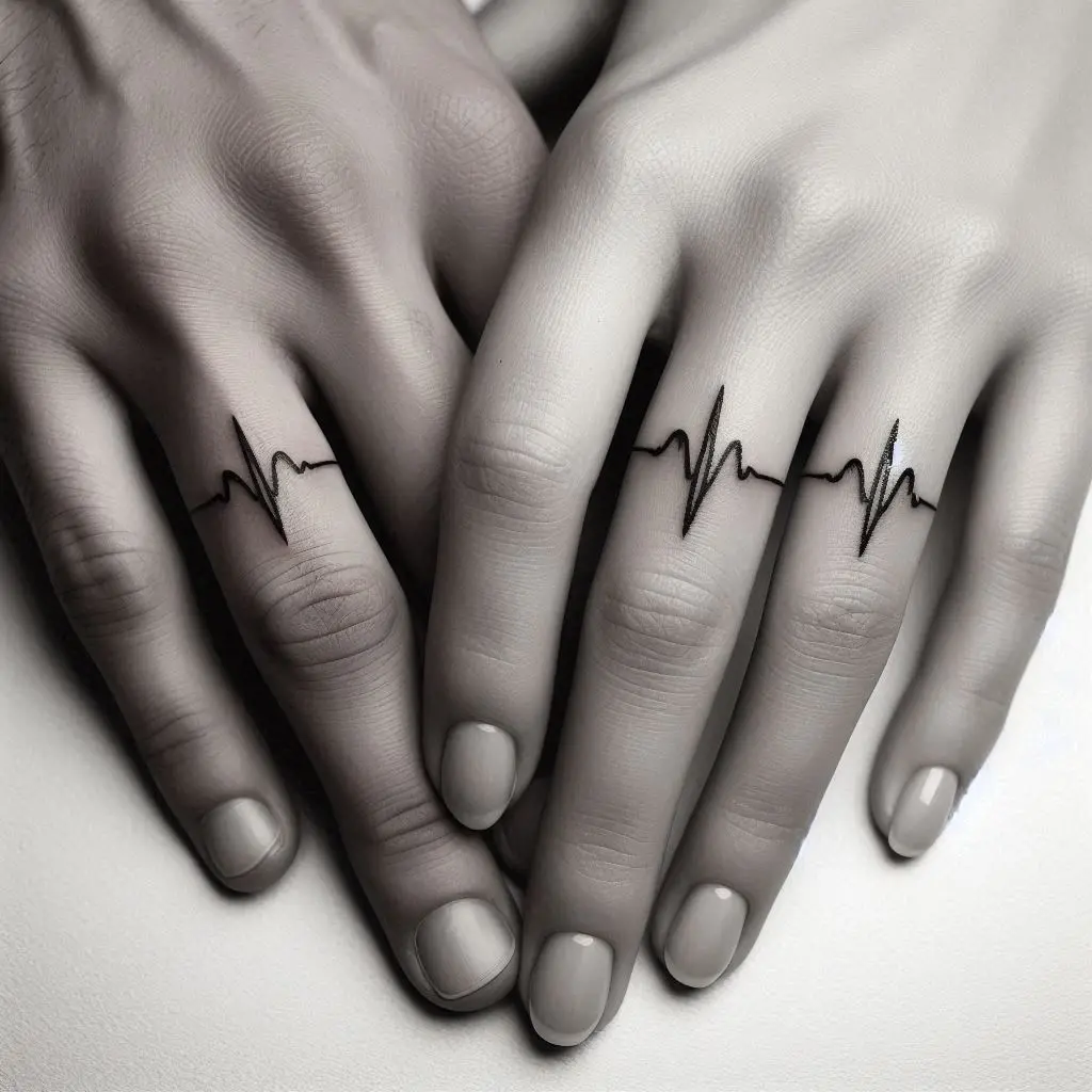 This design is truly personal. The tattoo mimics the rhythm of your heartbeats, creating an intimate symbol of your connection. It could be a heartbeat line or an abstract design that represents the feeling of being connected at the core.