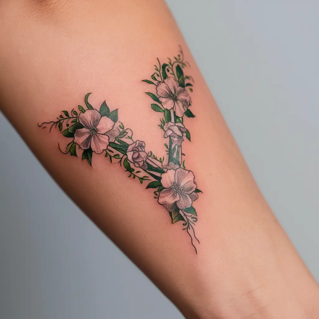 Imagine a “Y” shaped from delicate flowers and intertwining vines. This design is soft and feminine, symbolizing growth and beauty.